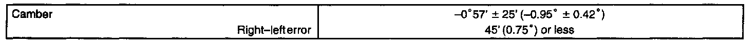 If the measured value is not within the specified value, inspect the suspension parts for damage and/or wear and replace them as necessary because the camber is not adjustable.