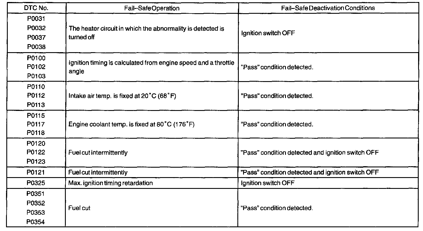 If any of the given codes are recorded, the ECM enters the fail safe mode.