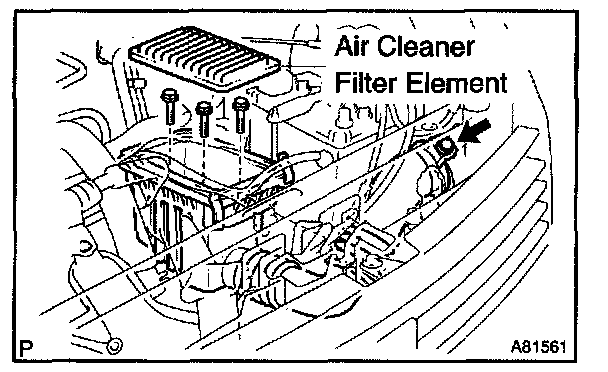 b. Secure the air cleaner inlet to the engine compartment with the bolt.