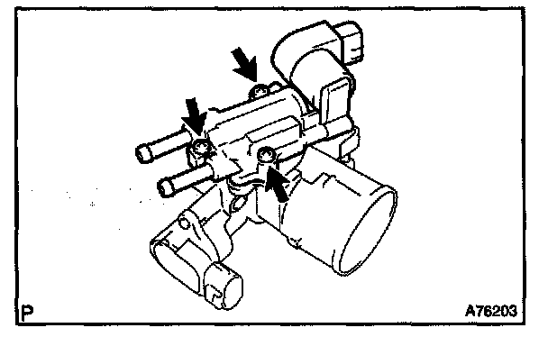 d. Remove the bolt and 2 nuts, then remove the accelerator control cable bracket and throttle body.