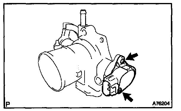 b. Insert the throttle position sensor into the throttle body, then rotate the throttle position sensor 45° clockwise until the throttle valve is in the fully closed throttle position.