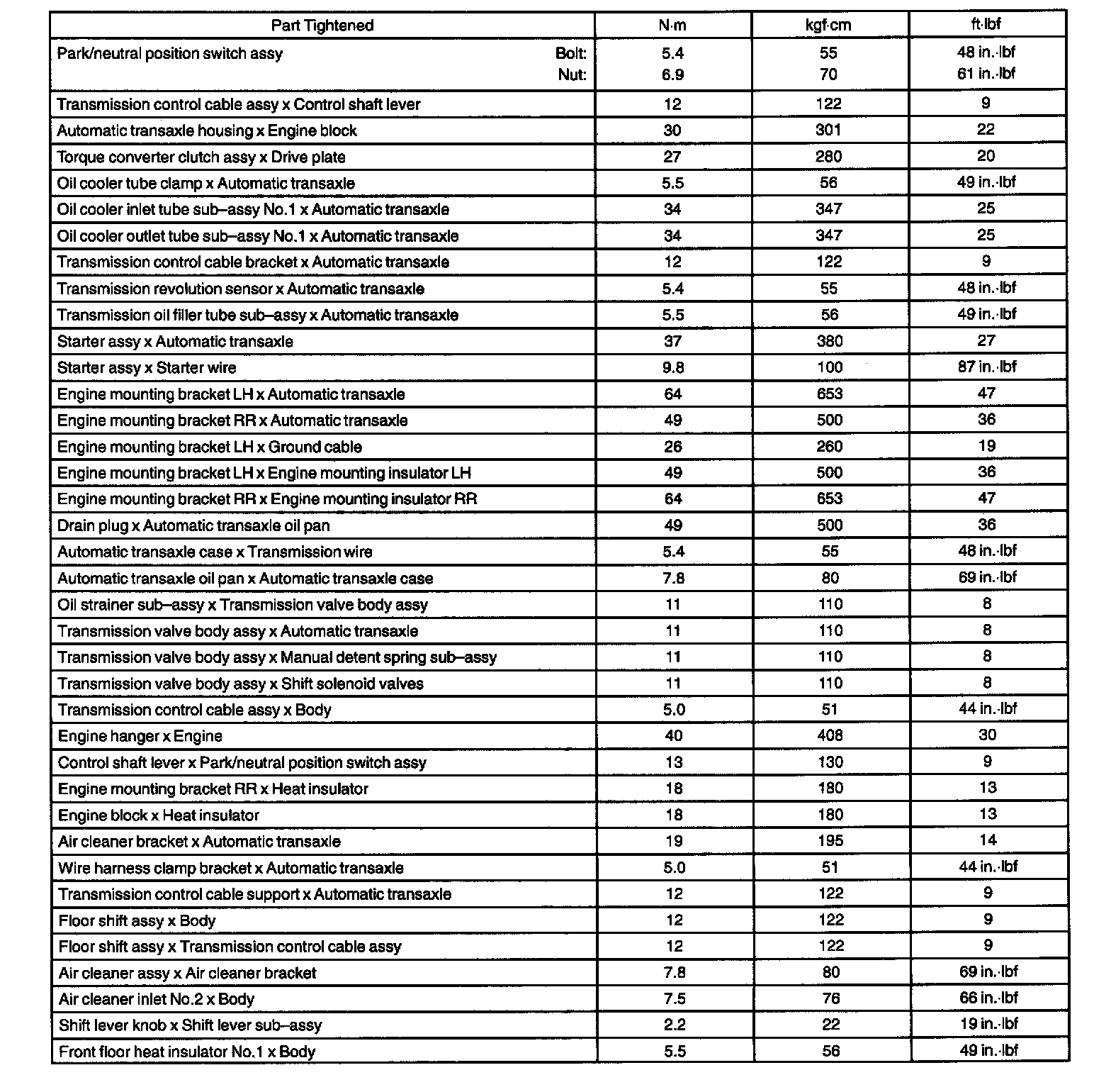 Torque Specification