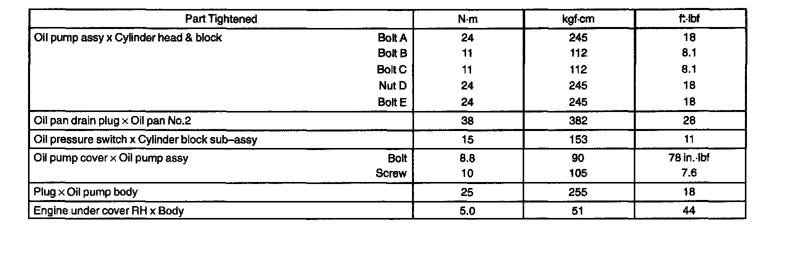 Torque Specification