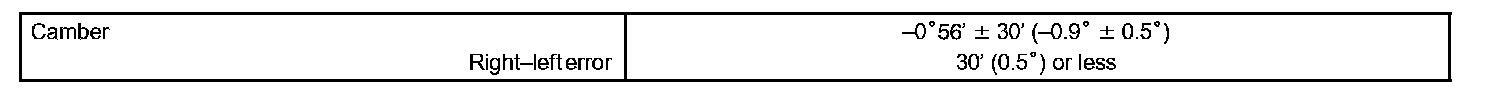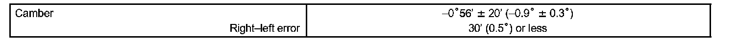 If the measured value is not within the specified range, inspect the suspension parts for damage and/or wear and replace them if necessary because camber is not adjustable.