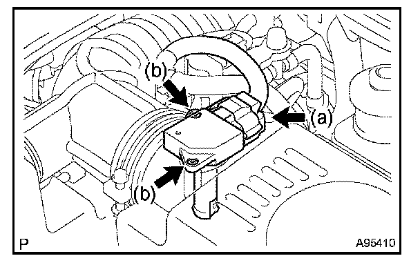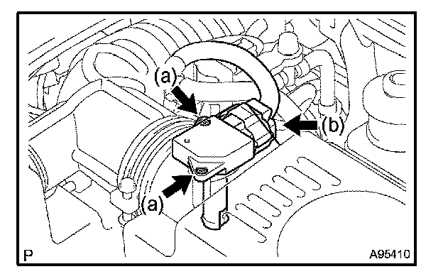 b. Remove the 2 screws, then remove the mass air flow meter.
