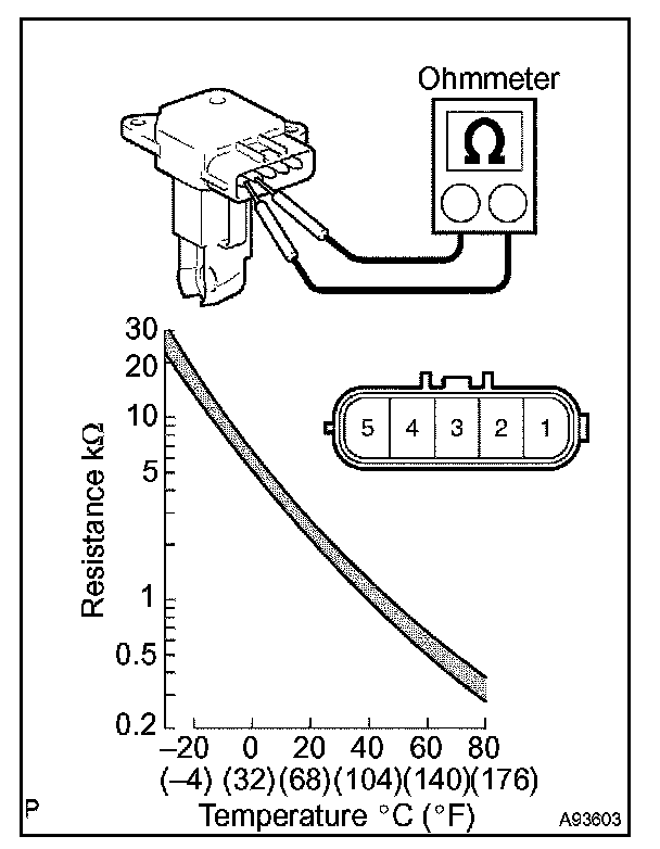 3. Blow air into the mass air flow meter, then check that the voltage fluctuates.