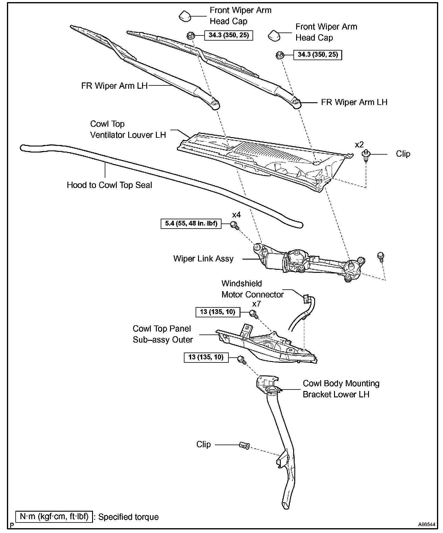 Torque: 5.4 N.m (55 kgf.cm, 48 in.lbf)