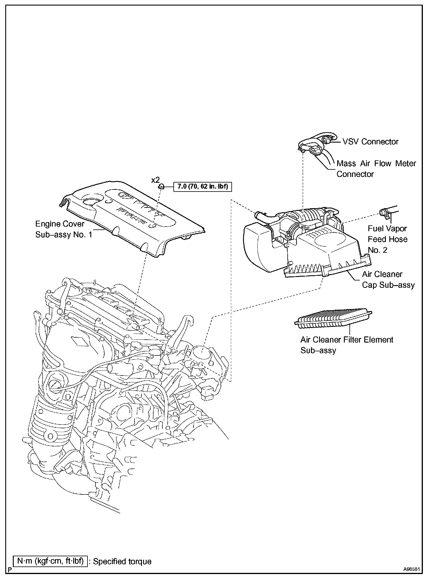 Torque: 13 N.m (135 kgf.cm, 10 in.lbf)