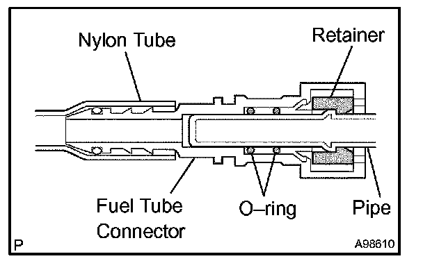 - Do not allow any scratches or foreign objects on the parts when disconnecting, as the fuel tube connector has the O-ring that the seals the pipe.