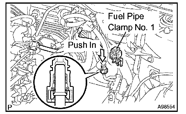 - If the fuel tube connector and pipe are stuck, push and pull to release them.