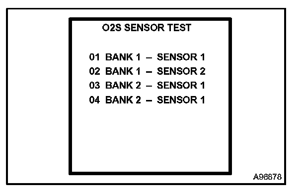 h. Select the desired HO2 sensor from the list and press the ENTER button (a screen such as that shown on the left appears).