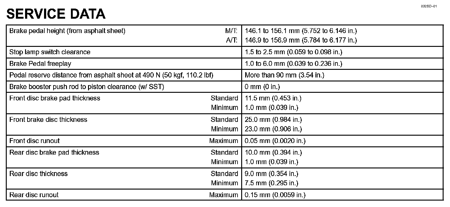 Brake - Service Data: