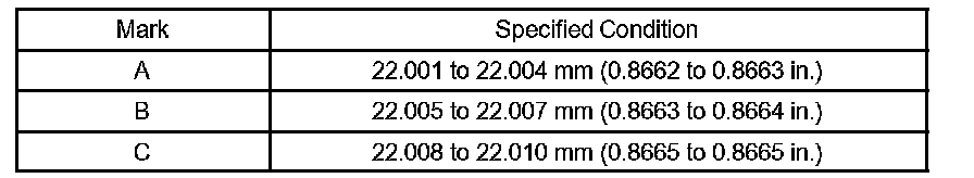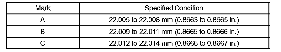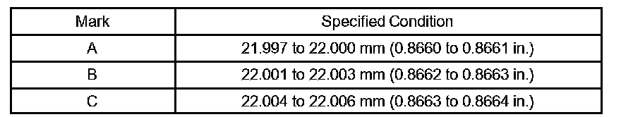 Piston pin outer diameter 21.997 to 22.006 mm (0.8660 to 0.8664 inch)