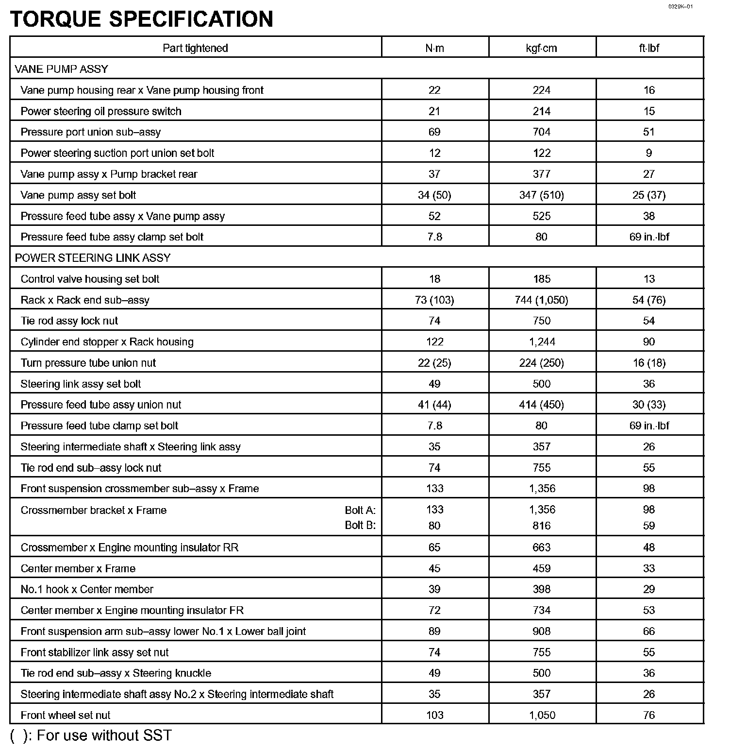 Power Steering - Torque Specification: