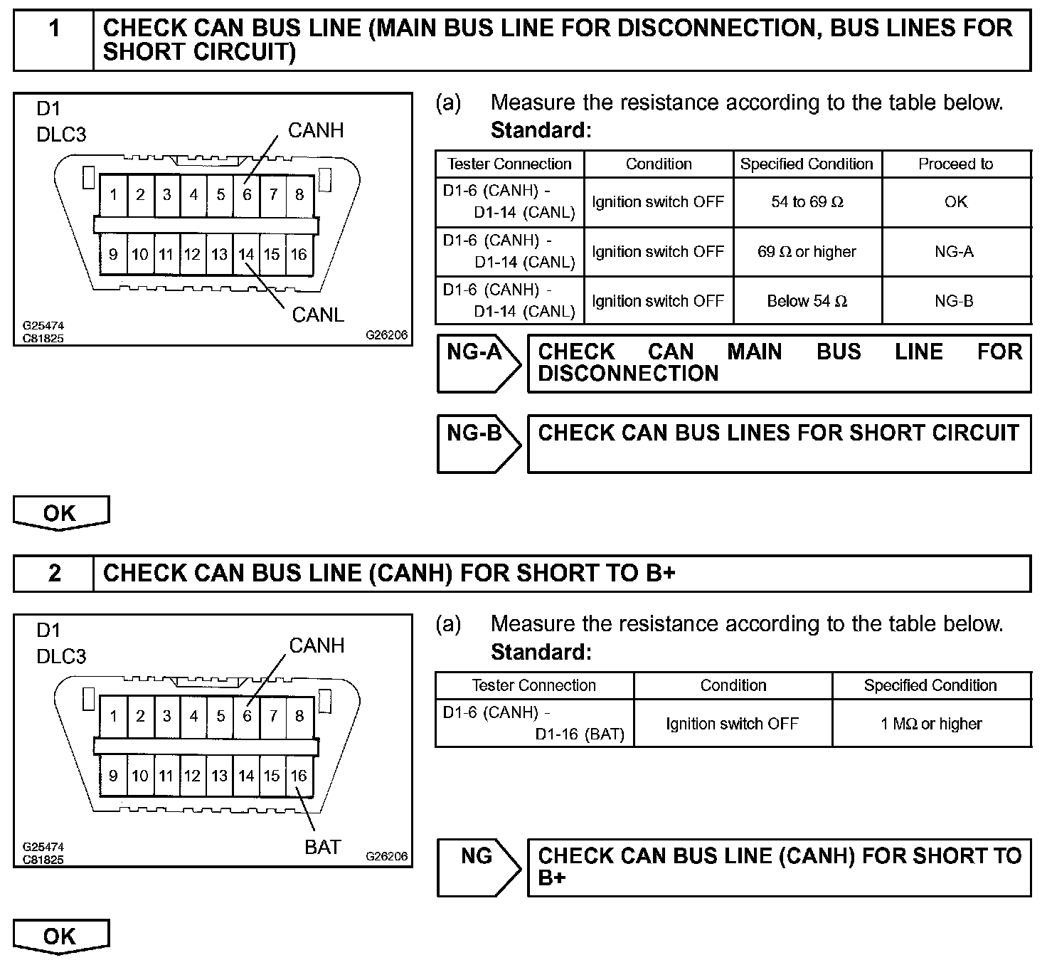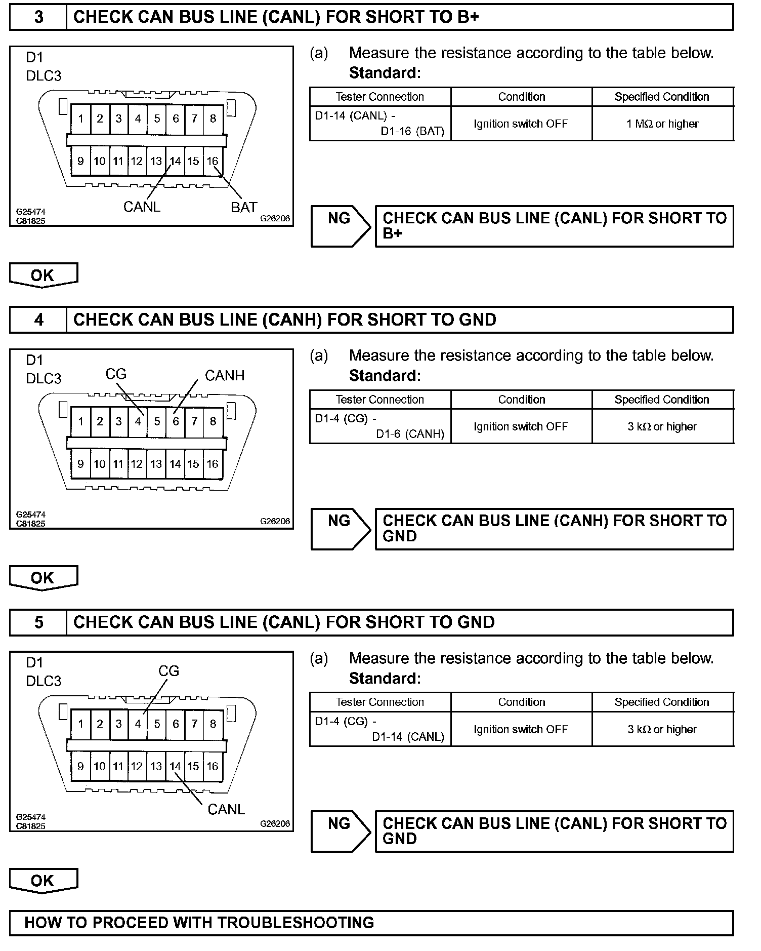 When a CAN communication DTC is output, first measure the resistance between the terminals of the