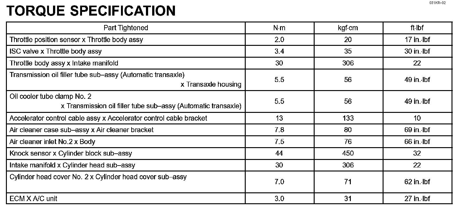 Engine Control System - Torque Specification: