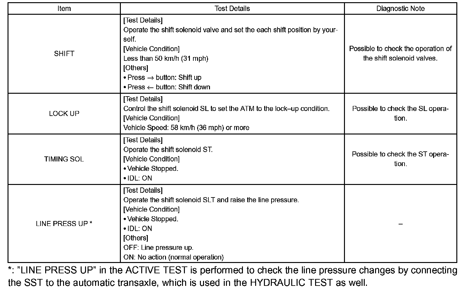 HINT: The pressure values in ACTIVE TEST and HYDRAULIC TEST are different from each other.