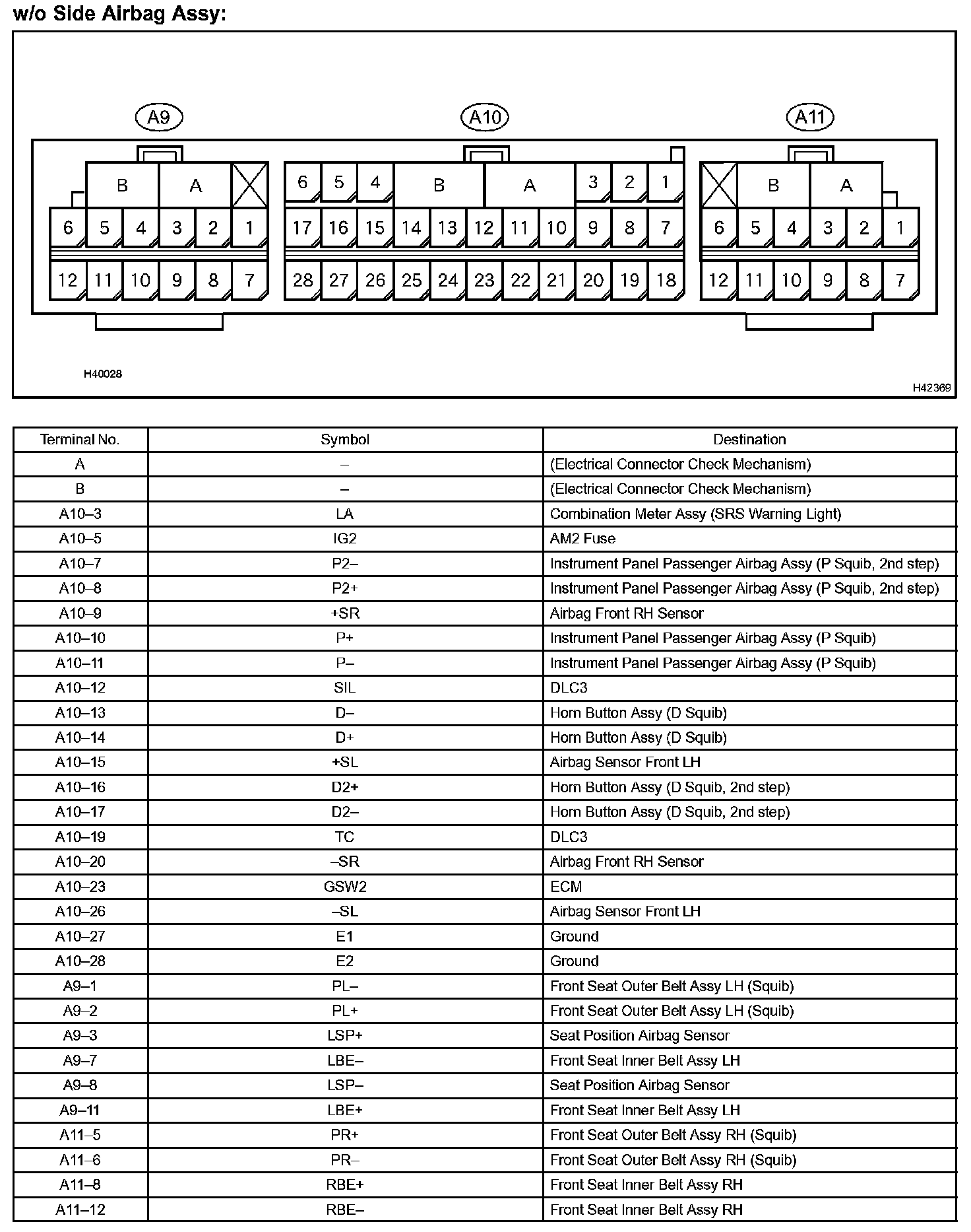 Terminals Of Control Module/Pinouts - W/o Side Airbag Assy:
