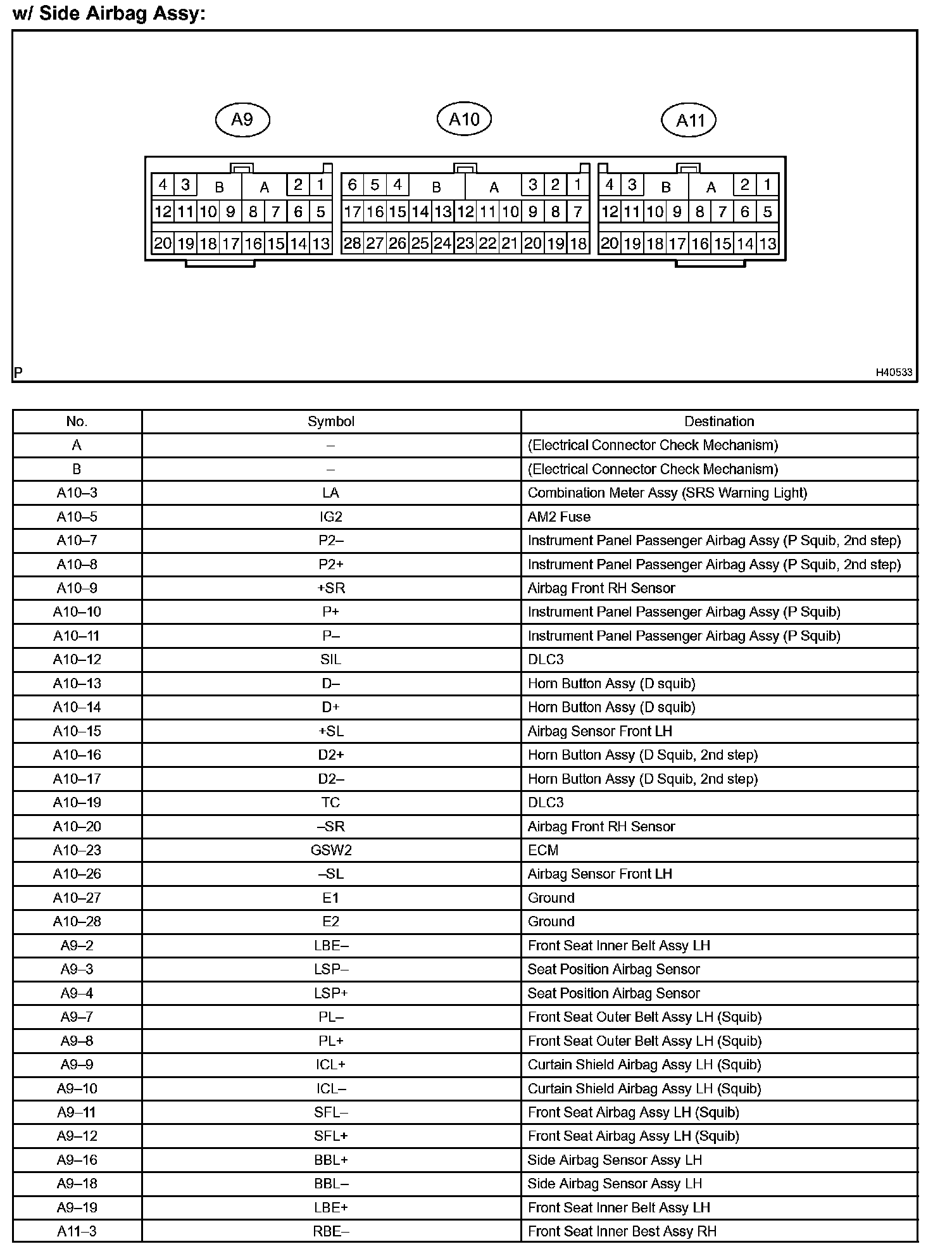 Terminals Of Control Module/Pinouts - W/ Side Airbag Assy Part 1: