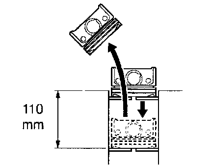 Using a piston, push the piston ring a little beyond the bottom of the ring travel, 110 mm (4.33 inch) from the top of the cylinder block.