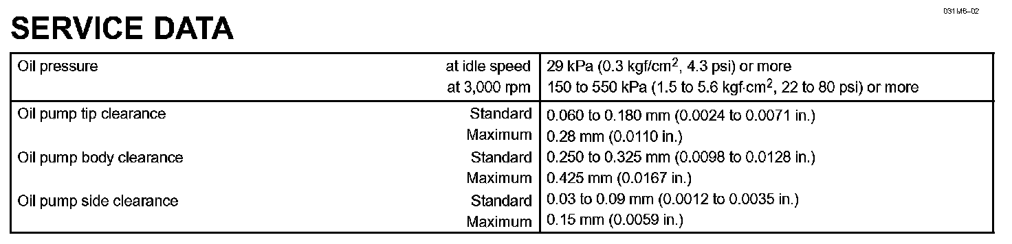 Lubrication - Service Data:
