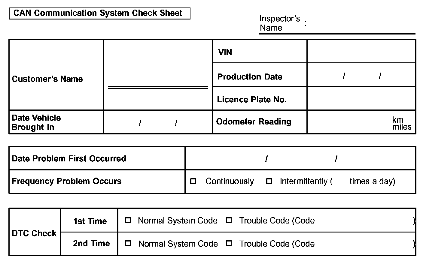 CAN Communication System Check Sheet: