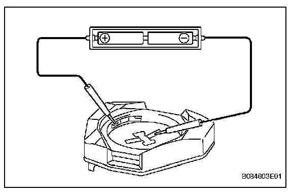 HINT: When a new or non-depleted transmitter battery is not available, connect 2 new 1.5 V batteries in series. Then connect leads to the batteries and use the leads to apply 3 V to the transmitter, as shown in the illustration.
