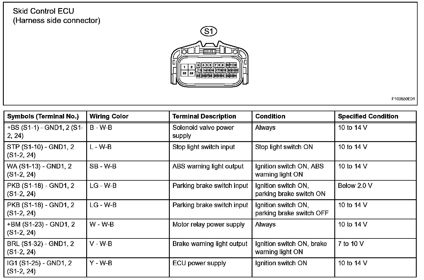 HINT: Voltage cannot be measured with the connector connected to the skid control ECU as the connector is water resistant.