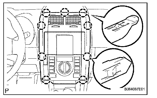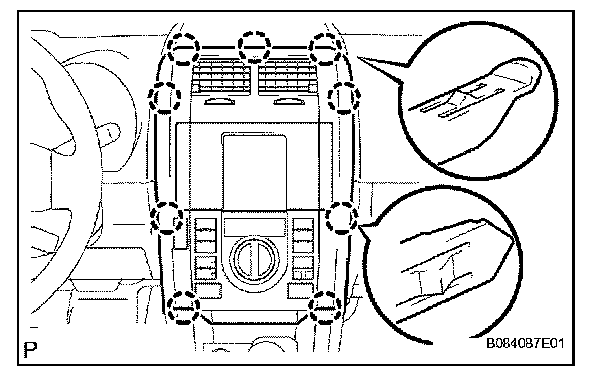 b. Attach the 9 claws to install the instrument cluster finish panel.