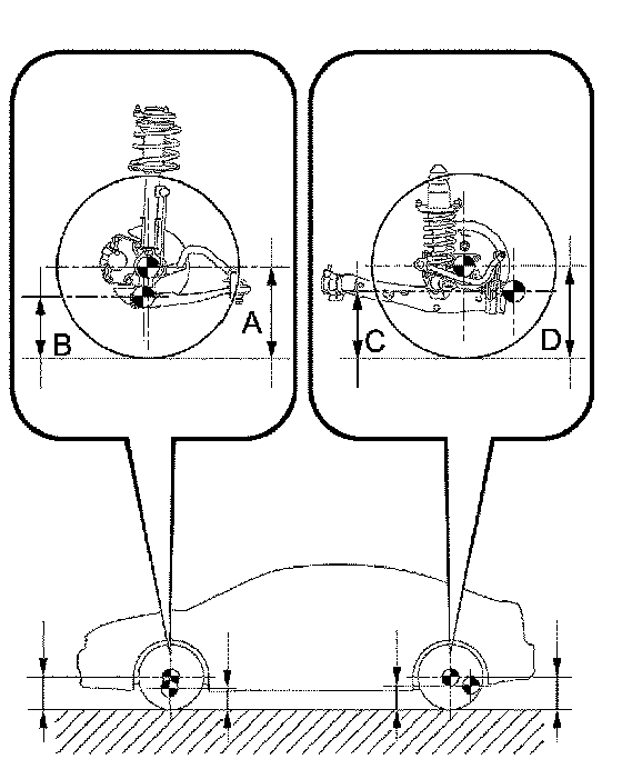 HINT: Bounce the vehicle at the corners to stabilize the suspension and inspect the vehicle height.