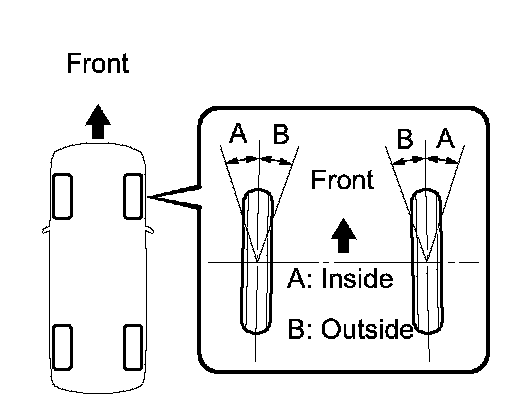 NOTICE: Before inspecting the wheel alignment, adjust the vehicle height to the specified value.