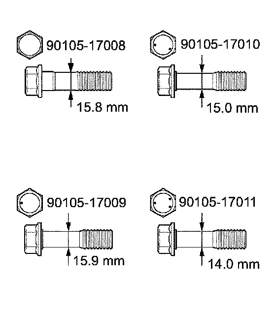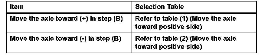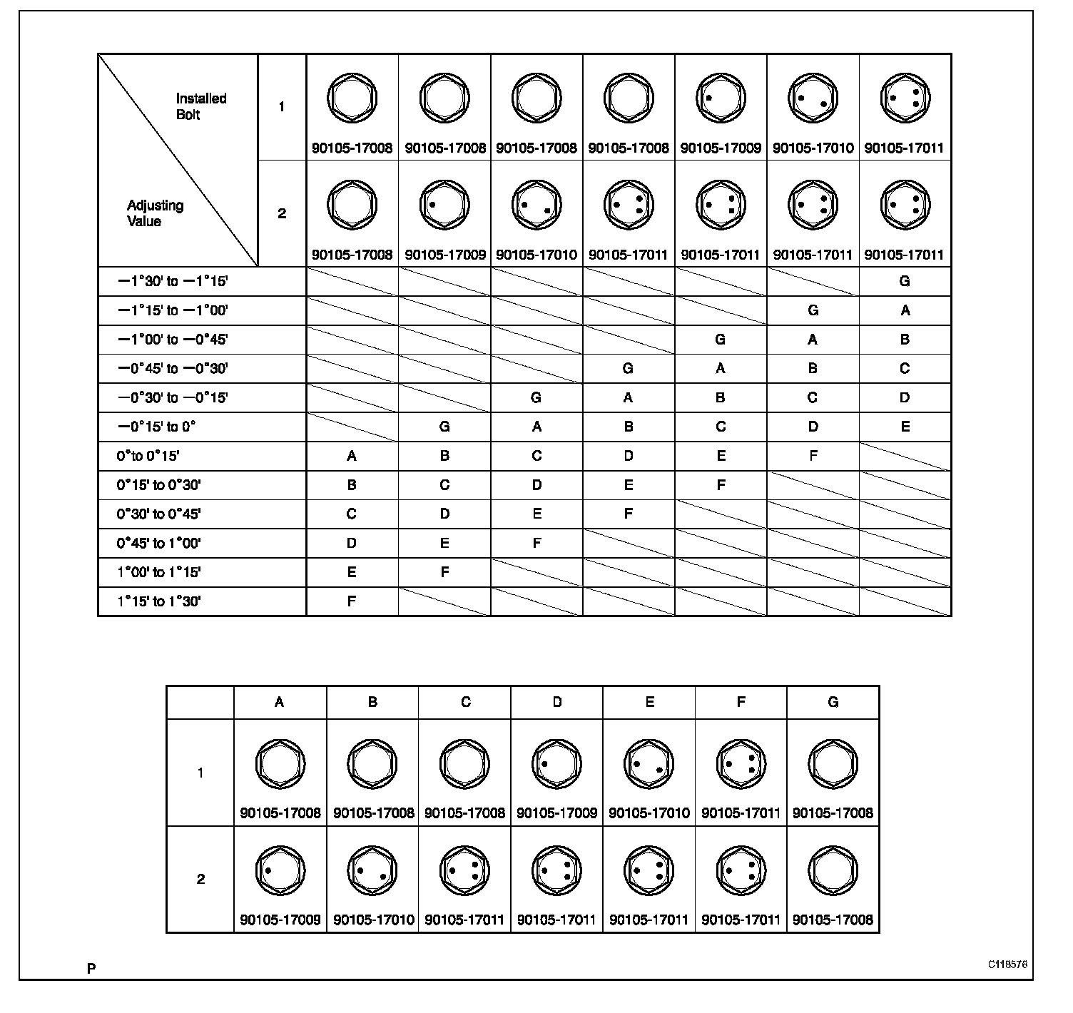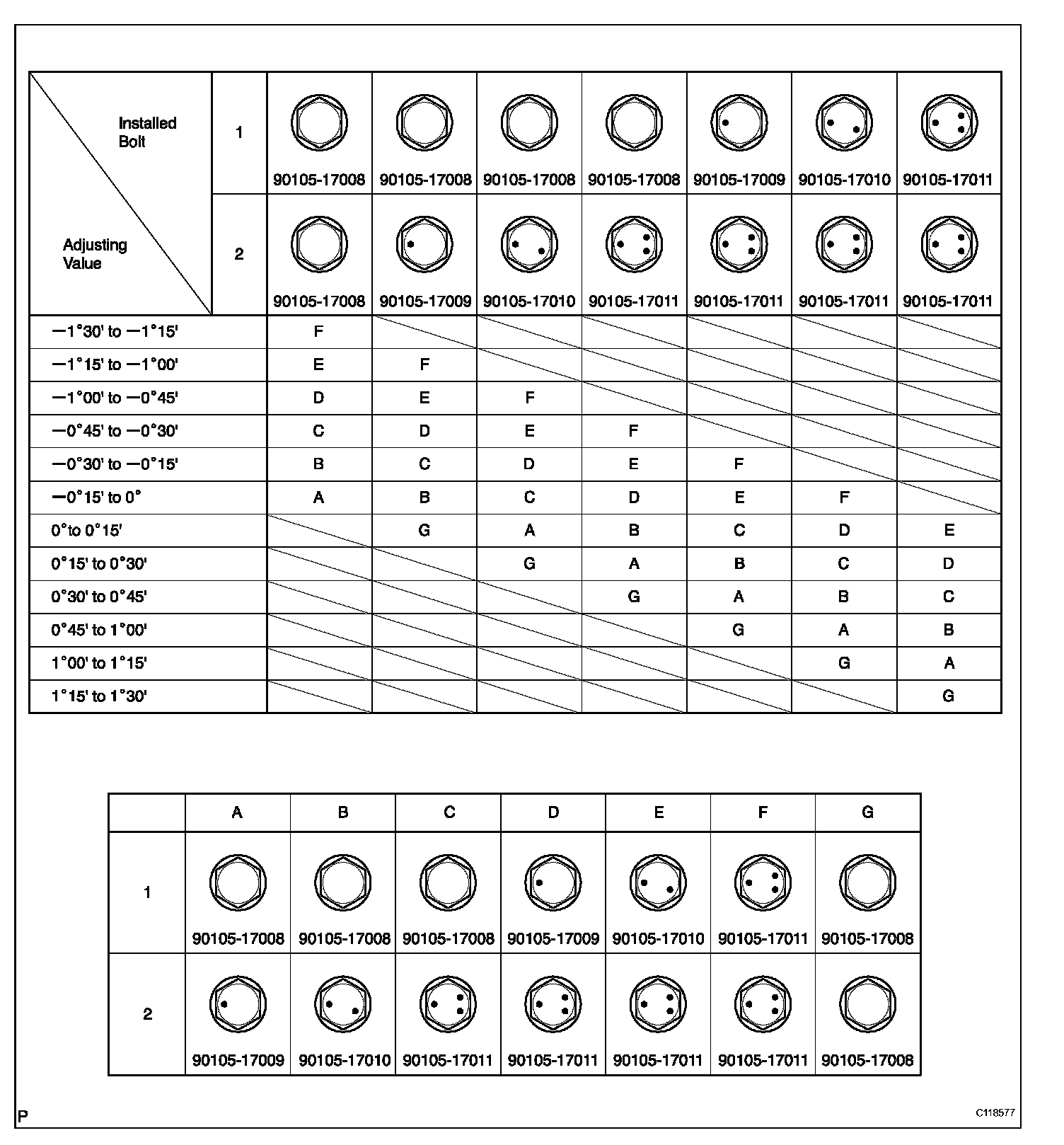 i. Check installed bolts combination. Select appropriate bolts from the table to adjust the camber within the specified range.