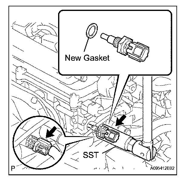 b. Using SST, remove the sensor and gasket.