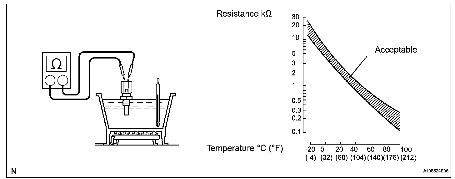 NOTE: If checking the sensor in water, be careful not to allow water to contact the terminals. After checking, wipe the water off the sensor.