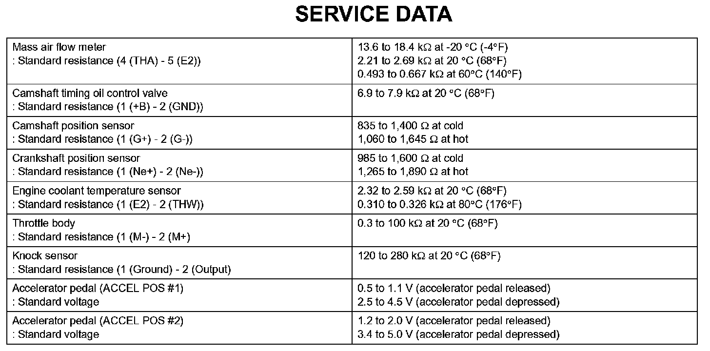 Engine Control System-Service Data: