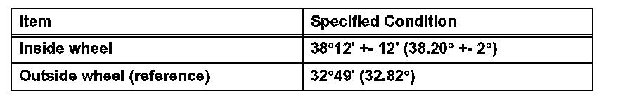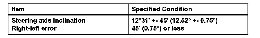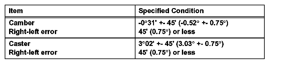 Front Wheel AlignmentStandard camber, caster and steering axis inclination: