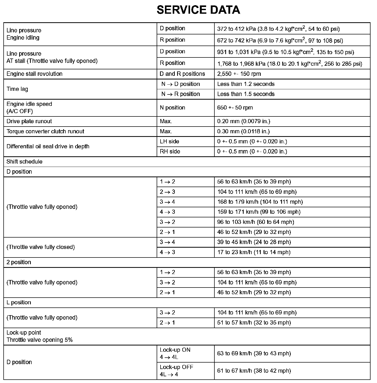 Automatic Transaxle-Service Data: