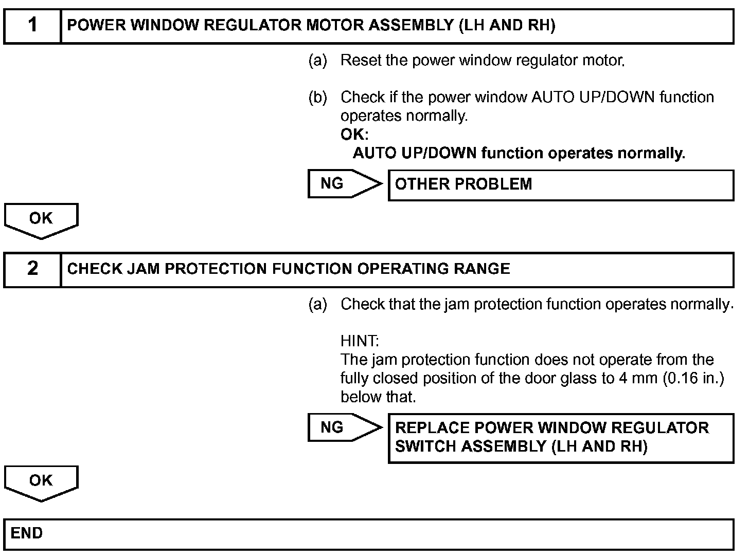 HINT: The jam protection function is available on the driver side power window and passenger side power window.