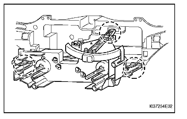 c. Using a screwdriver, detach the claw of the cable clamp and disconnect the defroster damper control cable.