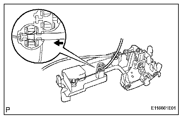 b. Connect the outer cable of the air mix damper control cable on the cable clamp.