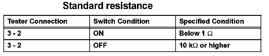If the result is not as specified, replace the A/C switch.