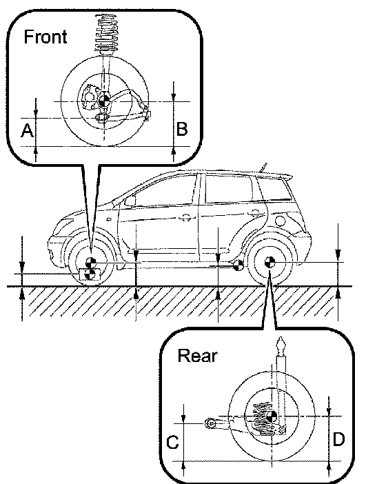 HINT: Bounce the vehicle at the corners up and down to stabilize the suspension and inspect the vehicle height.