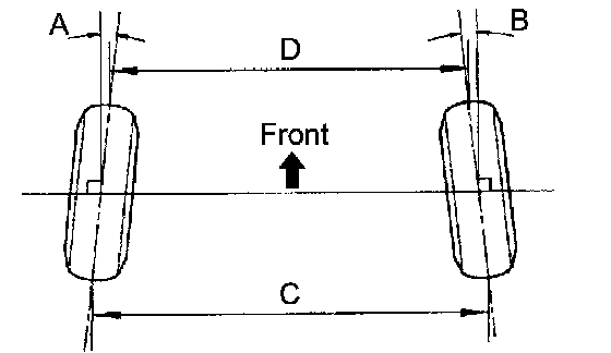 If the toe-in is not within the specified value, inspect the suspension parts and replace them if necessary.