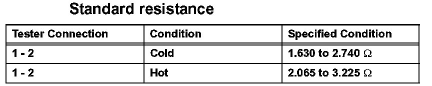 If the result is not as specified, replace the camshaft position sensor.