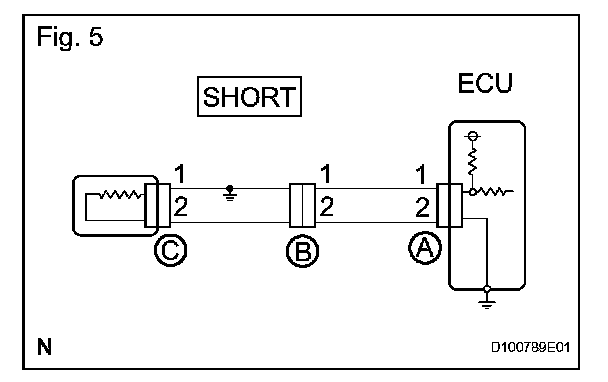CHECK FOR SHORT CIRCUITa. If the wire harness is ground shorted (Fig. 5), locate the section by conducting a resistance check with the body ground (below).