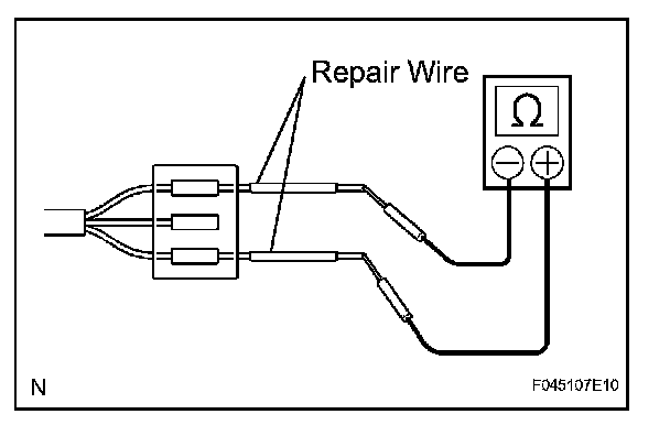 b. If the tester probes cannot be inserted, use repair wires to check the resistance as shown in the illustration.