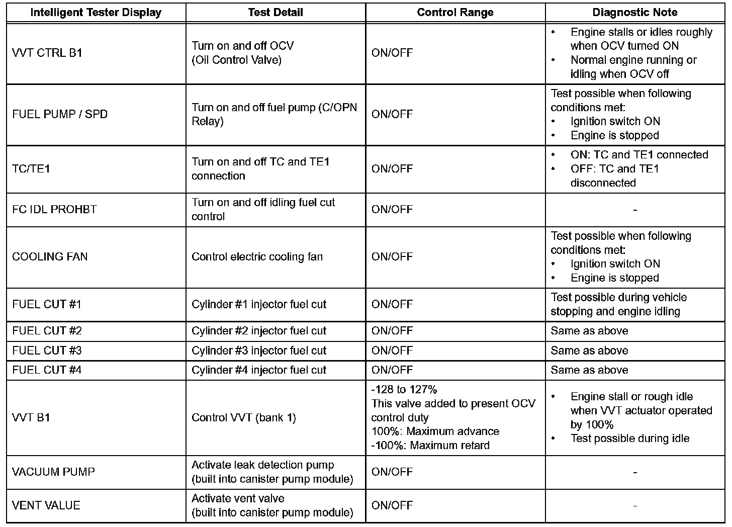 ACTIVE TESTHINT: Performing the intelligent tester's ACTIVE TEST allows relay, Vacuum Switching Valve (VSV), actuator and other items to be operated without removing any parts. Performing the ACTIVE TEST early in troubleshooting is one way to save time. The DATA LIST can be displayed during the ACTIVE TEST.