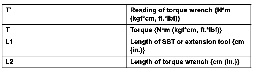 1. Use the formula below to calculate special torque values for situations where SST or an extension tool is combined with the torque wrench.