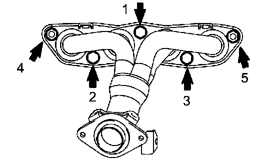 Exhaust manifold bolts & nuts 27 Nm (275 kgf-cm, 20 ft. lbs.)