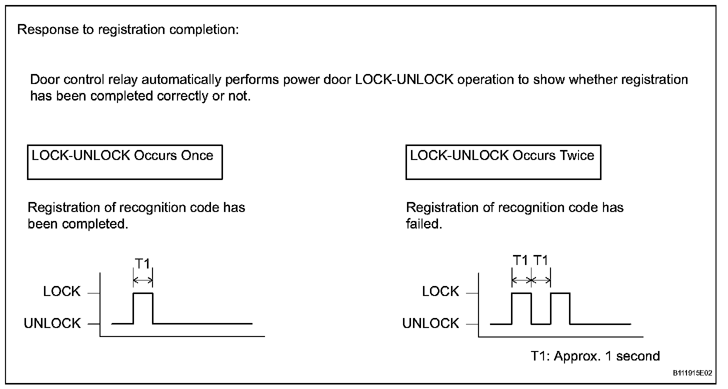 - In confirmation mode, the LOCK-UNLOCK operation will occur once for each recognition code that has been registered. For example, if 2 recognition codes have been registered, the LOCK-UNLOCK operation will occur 2 times.